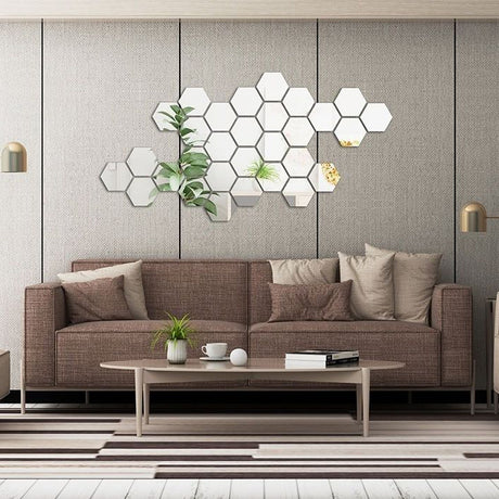 Breng stijl, licht en diepte in je interieur met dit elegante hexagonale spiegel wandpaneel. Het unieke honingraatdesign geeft elke ruimte een moderne en luxe uitstraling en zorgt voor een speels lichtspel op de muur. Dankzij de strakke vormen en subtiele afwerking past dit paneel moeiteloos in zowel een modern als een klassiek interieur.